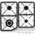 Поверхность: варочная панель • Тип поверхности: газовая • Рабочая поверхность: эмаль • Число конфорок: 4 • Установка: независимая • Газовые конфорки: всего - 4 • Тип управления: механическое • Переключатели: поворотные • Электроподжиг: есть, механический • Размеры: 590x520x85 мм • Размер ниши для встраивания: 554x494 мм • Цвет: панель - белый