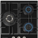 Поверхность: варочная панель • Тип поверхности: газовая • Рабочая поверхность: закаленное стекло • Число конфорок: 3 • Установка: независимая • Газовые конфорки: всего - 3 (1 конфорка "Двойная корона") • Газ-контроль конфорок: есть • Тип управления: механическое • Переключатели: поворотные • Электроподжиг: есть, автоматический • Размеры: 440x515x100 мм • Размер ниши для встраивания: 410x490 мм